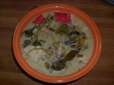 Now that you all have put in a hard one hour of work making a home made green curry paste, I can show you when it really pays off. I love to make a quick soup for lunch and you can't get much easier than this. I picked up some candy onions and leeks from my market, chopped them and sauteed them with a couple of tablespoons of the curry paste. Then I added: